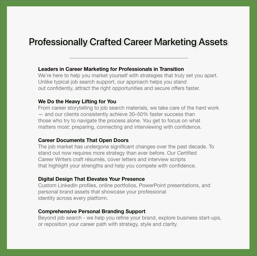 Professionally Crafted Career Marketing Assets