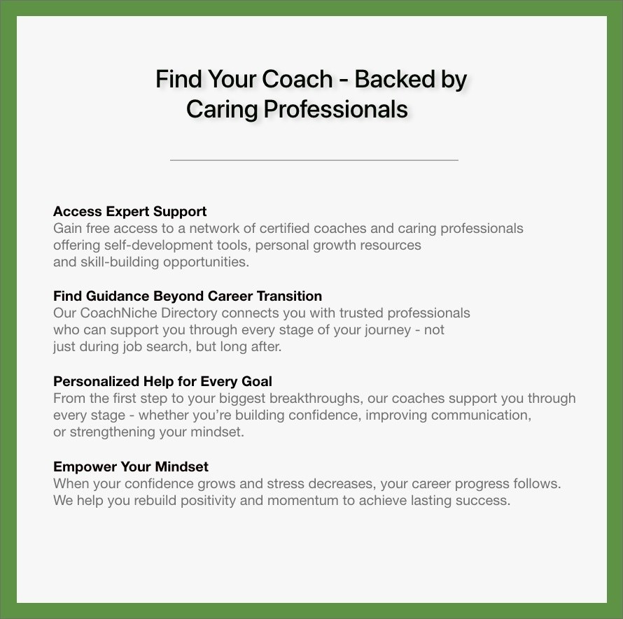 Now more than ever, getting expert guidance matters. The next decade will reshape the world of work, increase competition and redefine careers. Our coaches are here to help you stay ahead, stand out and navigate your next best move with confidence.